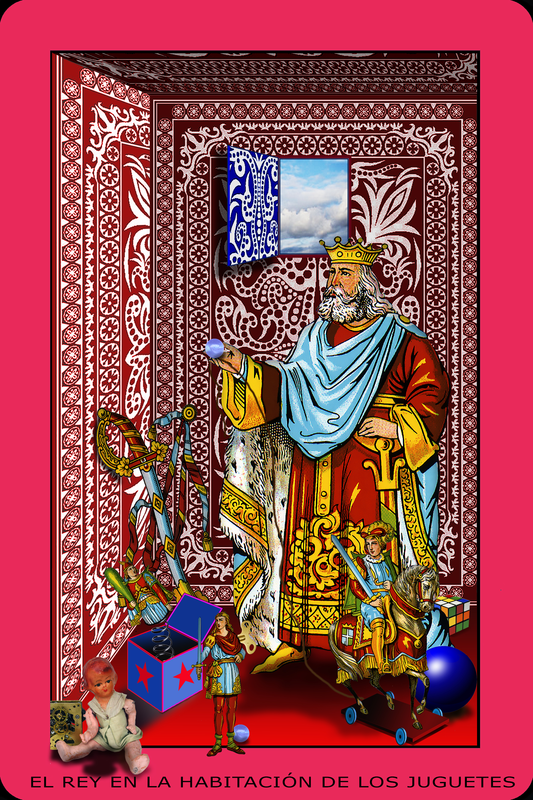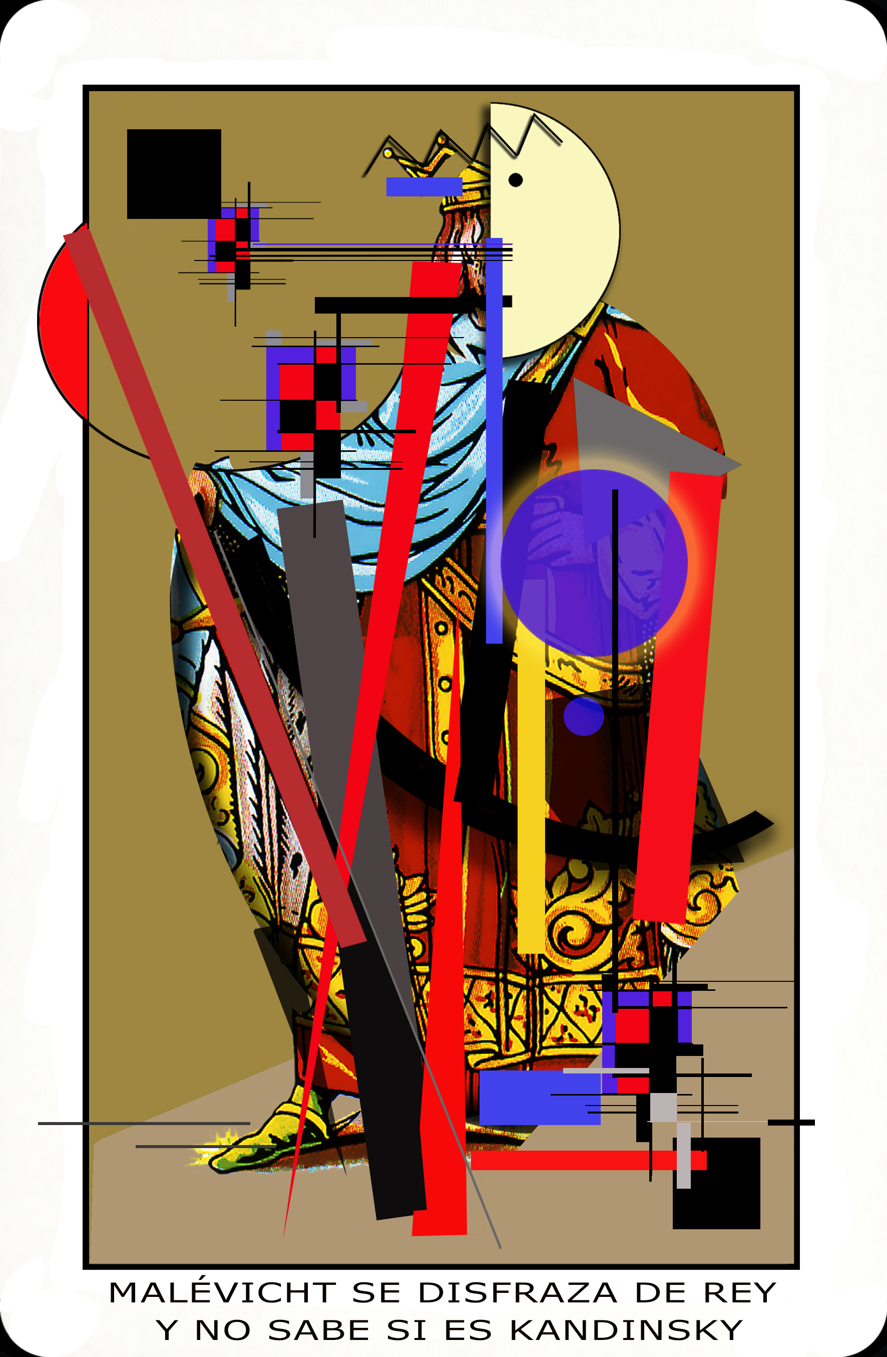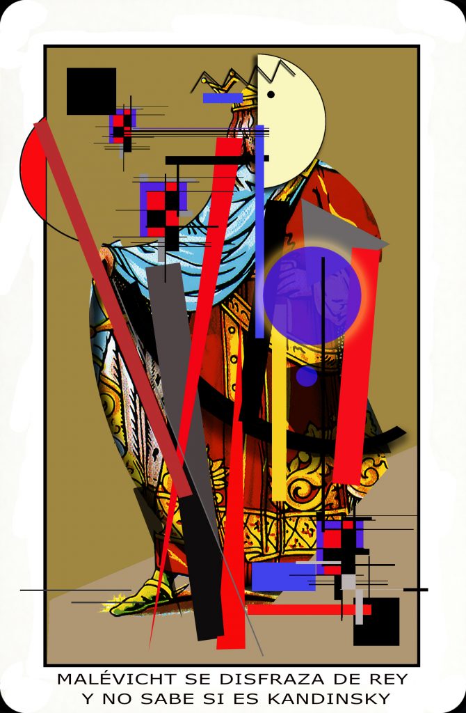 En esta ocasión, el artista ha tomado diferentes imágenes de naipes, manipulándolas, escogiéndolas como protagonistas de cada una de las obras, asociadas a las figuras de la baraja española: reyes, sotas y caballos, pero en un nuevo contexto poético.