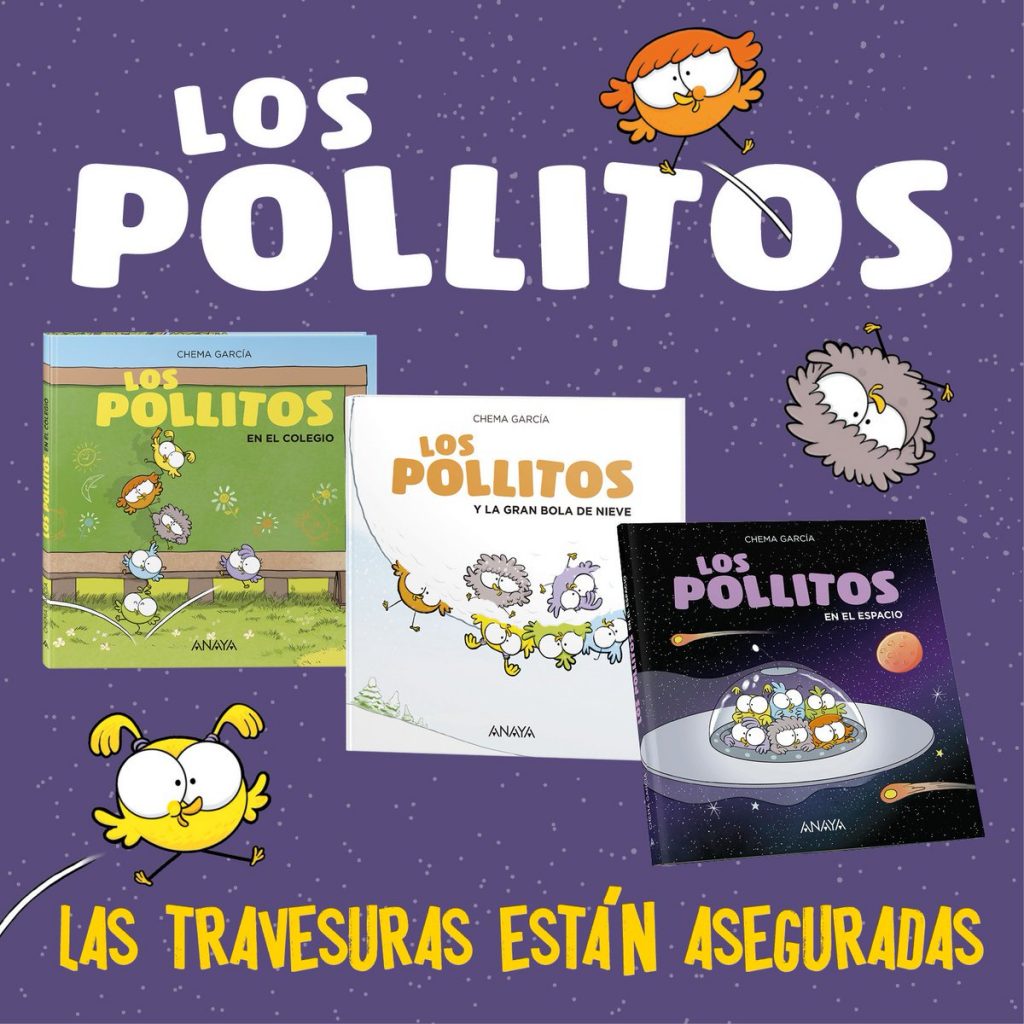 Lana, Lolo, Lúa, Lía, Leo y Lilo se encargaron tiempo después de confirmarle que eligió el camino correcto. Ellos son “Los pollitos”, una serie de libros infantiles y una de las grandes apuestas de la editorial ANAYA desde que rompieron su cascarón en 2019. Primero fueron “Los pollitos y la gran bola de nieve” después viajamos con ellos al espacio, al colegio y, por último, este 2020 sorprendió con “Las aventuras de los pollitos”. Una colección de cuatro cuentos infantiles creados por este dibujante y también autor que se han convertido en uno de los grandes éxitos de la literatura infantil y que seguro continuarán con sus travesuras.