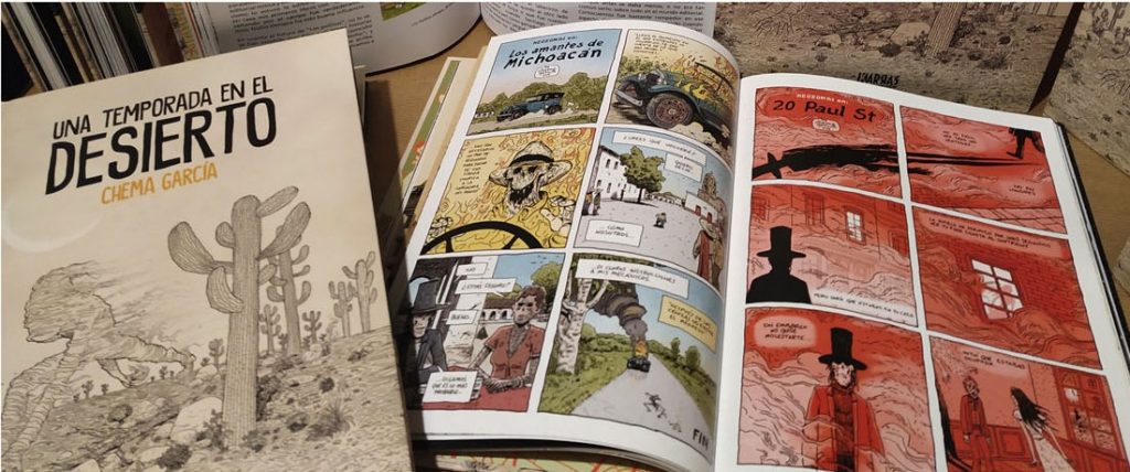 Impulsado por una creatividad desbordante, a lo largo de las 112 páginas de “Una temporada en el desierto”, Chema García enseña sus trazos más personales en los que no faltan las influencias de sus tres autores fetiche: Manuel Vázquez, Moebius y Robert Crumb.